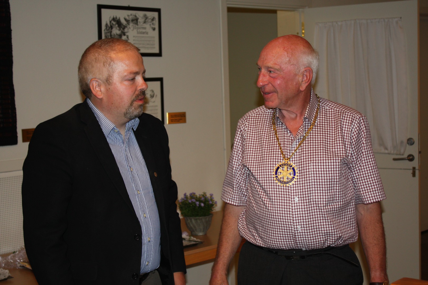 Hyggelig møte med opptak av nytt medlem og presidentskifte. Flott servering.
